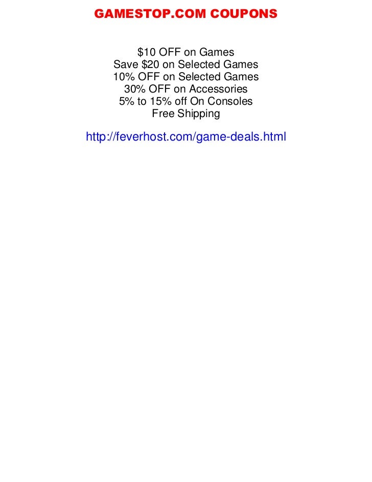 GameStop Coupons | Video Game Store | Oak Landing, Southside ... GameStop Coupons in Jacksonville, FL located at 13740 Beach Blvd #101. These printable coupons are for GameStop are at a great discount. Deals. Top Cities; New York; Chicago; Minneapolis; Los Angeles; San Diego ... Looking for GameStop coupon codes, gift cards, vouchers and offers? ... GameStop Coupons June 2022 - USA Today Choose the code above that you'd like to redeem. For example, if you're looking for 10% off orders at GameStop then find the code above, and click on Get Code to reveal the code. Step 2: Copy your Promo Code. Simply copy the code that is presented to you. You need this code in order to inform GameStop to remove part of the cost of your ...
