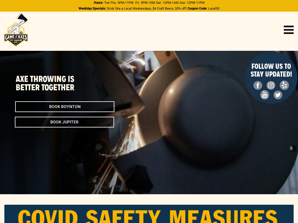 Ax throwing is growing in popularity and cultivating diverse community 0:00. 0:59. When Christopher "Poppa Bear" Rios, 40, first heard the sound of an ax hit the wooden board at a venue in Austin, Texas, he fell in love. Ax throwing started as a date idea with Rios ... Epic Axe Throwing - Orlando, FL BOOK YOUR AXE THROWING GROUP NOW! BOOK AXE THROWING NOW Epic Axe Throwing. 47 East Robinson Street, Suite #104, Orlando, Florida 32801, United States of America. 385-429-3386 Axe_Us@epicaxethrowing.com. Hours. Mon 10pm - 10pm. Tue 10pm - 10pm. Wed 10pm - 10pm. Thu 10pm - 10pm. Fri 10am - 11pm.