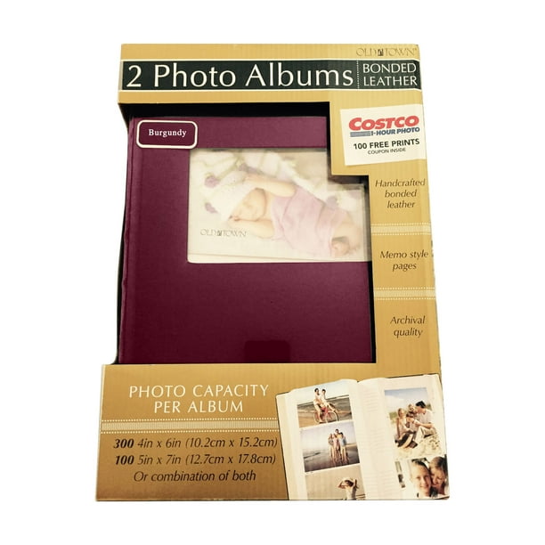Old Town 2-Pack Handcrafted Bonded Leather Photo Album With Large Window Holds 300 Photos Each - Burgundy